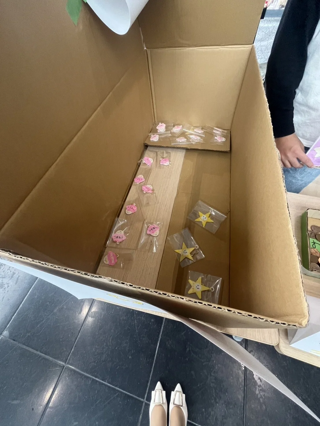 子供たちは地区を盛り上げるためのプロジェクトを発足させ、オリジナルキャラクターのキーホルダーを作成・販売を行いました。当日は大人気で無事に利益をあげることができました。